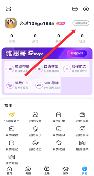 2、在個人的頁面,需要點擊編輯資料按鈕,進入個人資料頁面。