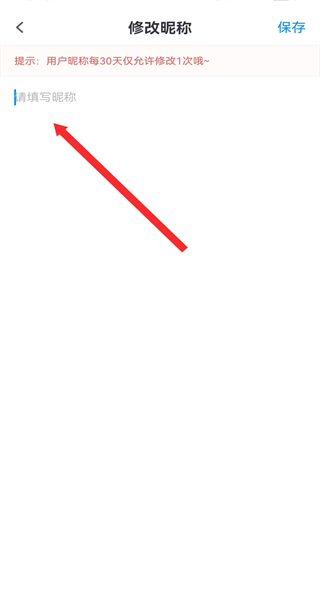 4、在修改昵稱頁面,輸入新昵稱后完成保存,即可完成昵稱修改操作。
