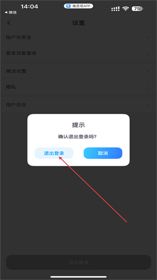 4、當界面彈出提示后,點擊退出登錄的按鈕即可完成。