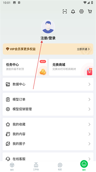 2、在個人中心頁面,點擊注冊/登錄選項,進(jìn)入登錄界面。