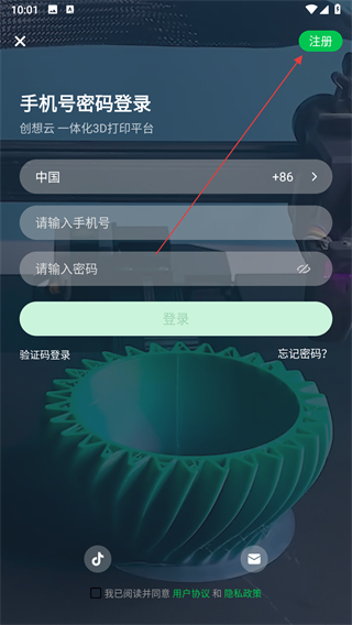 3、在登錄界面,點擊右上角的注冊按鈕,進(jìn)入注冊頁面。