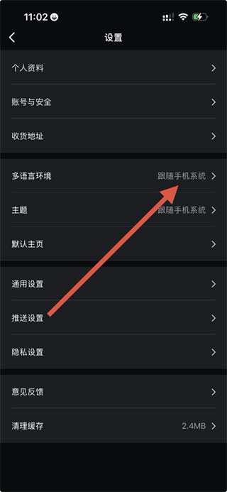 3、在設(shè)置界面,點擊多語言環(huán)境選項,進(jìn)入多語言環(huán)境頁面。