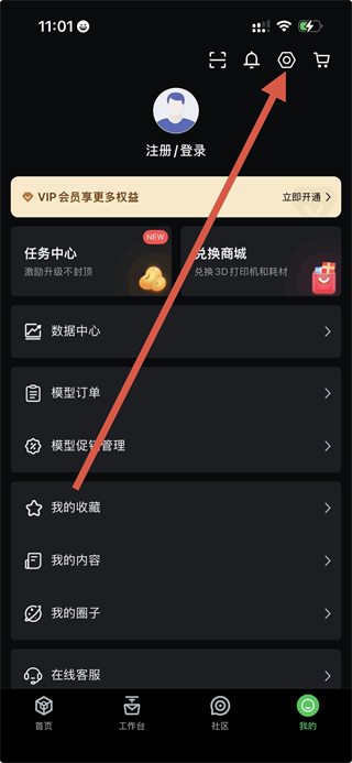 2、在個人頁面,點擊右上角設(shè)置圖標(biāo),進(jìn)入設(shè)置界面。