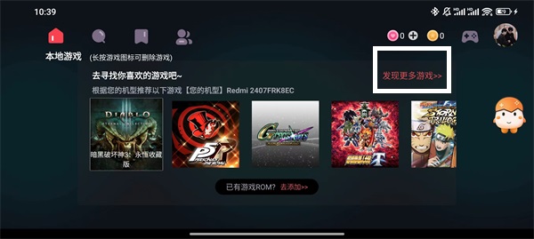 1、打開軟件,我們就可以在首頁看到很多推薦的游戲,點(diǎn)擊【發(fā)現(xiàn)更多游戲】就可以探索軟件支持的游戲庫(kù);