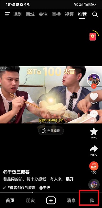 3、獲得的火苗可以在個人主頁看到,需要點擊首頁右下角的【我】,進入到個人主頁之中;