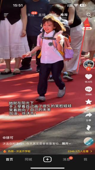 1、打開抖音APP進入到首頁內(nèi),用戶需點擊右上角的搜索圖標。