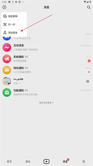 3、在彈出的菜單欄中,找到并點擊添加朋友的按鈕。