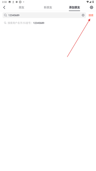 4、在添加朋友下,輸入抖音號再點擊右側(cè)搜索的按鈕。