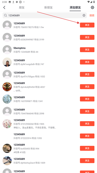 5、當結(jié)果出來后,找到對應(yīng)目標人物點擊關(guān)注即可添加成功。