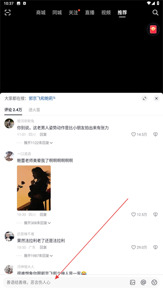 2、當界面彈出評論欄,點擊最下方的輸入框激活輸入法。