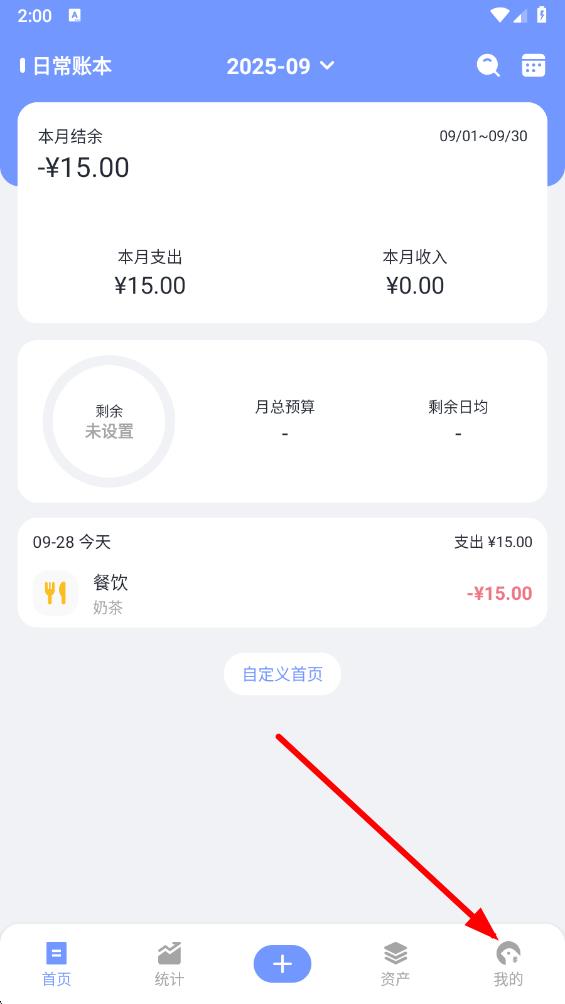 1、打開(kāi)一羽記賬app,點(diǎn)擊底部導(dǎo)航欄中的我的選項(xiàng)。