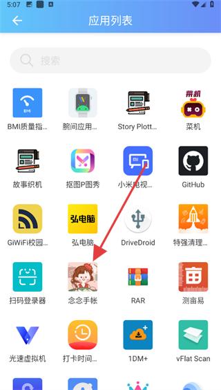 2、打開列表后,在應(yīng)用列表中,找到并點(diǎn)擊需要添加的應(yīng)用。