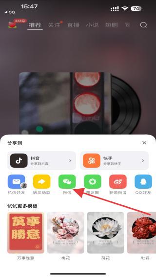 2、展開分享的菜單欄,點擊微信的功能圖標(biāo)。
