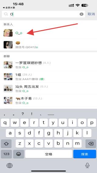 4、搜索結(jié)果出來后,點擊目標(biāo)人物,點擊后即可開始分享。