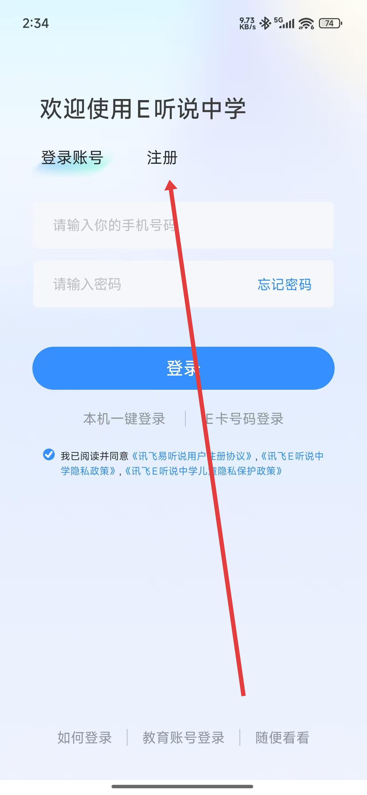 第二步:注冊并登錄E聽說(請使用手機(jī)號碼注冊并登錄)