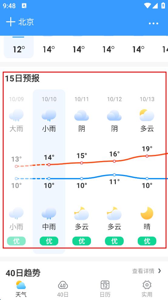 4、向上滑動(dòng)頁(yè)面,還能查看該城市未來(lái)15日的天氣預(yù)報(bào),了解后續(xù)天氣變化趨勢(shì)。
