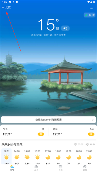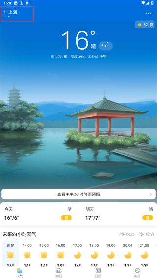 實(shí)時(shí)天氣情況查詢,當(dāng)天每一個(gè)時(shí)間點(diǎn)的天氣都可以詳細(xì)查看;