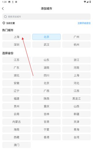 3、在添加城市的頁(yè)面內(nèi),選擇并點(diǎn)擊城市名稱。