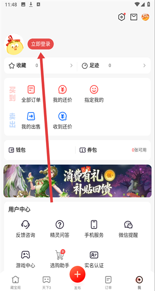 1、打開藏寶閣APP,點擊右下角“我”,進(jìn)入個人中心頁面。