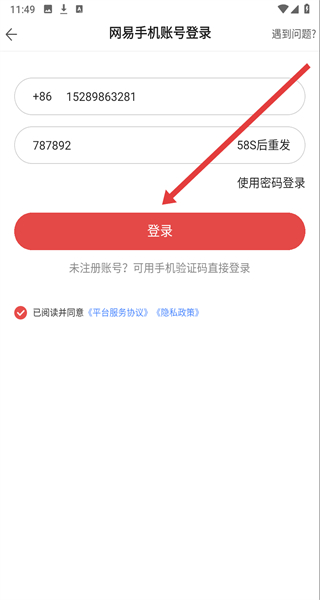 4、輸入手機號和驗證碼“787892”,勾選相關(guān)協(xié)議,點擊“登錄”按鈕,完成賬號登錄流程。