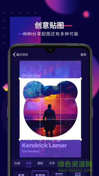 支持裁切多個宮格,可自定義切圖比例、添加圖形、文本等功能