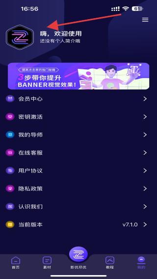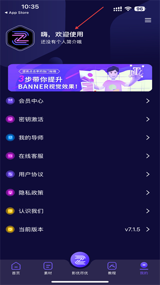 2、進入我的頁面內(nèi),點擊上方歡迎語的區(qū)域位置。