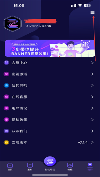 2、進入個人中心的頁面內(nèi),點擊右上三個橫線的圖標。