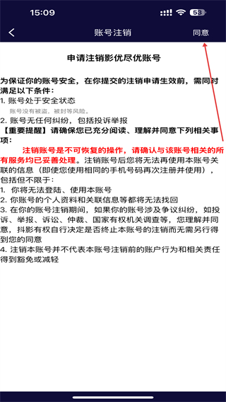 4、熟知注銷內(nèi)容后,點擊右上同意的按鈕即可。