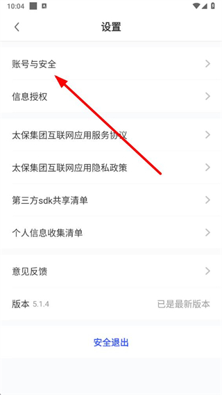 3、在設(shè)置頁面,點(diǎn)擊賬號與安全選項(xiàng),進(jìn)入賬號與安全頁面。