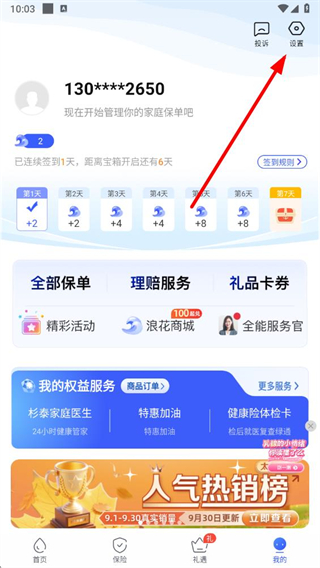 2、在我的頁面,點(diǎn)擊右上角的設(shè)置圖標(biāo),進(jìn)入設(shè)置頁面。