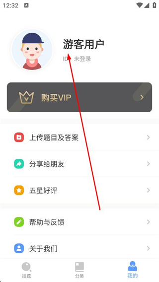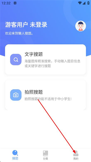 1、打開懶人搜題app,點擊底部導(dǎo)航欄最右側(cè)我的選項。