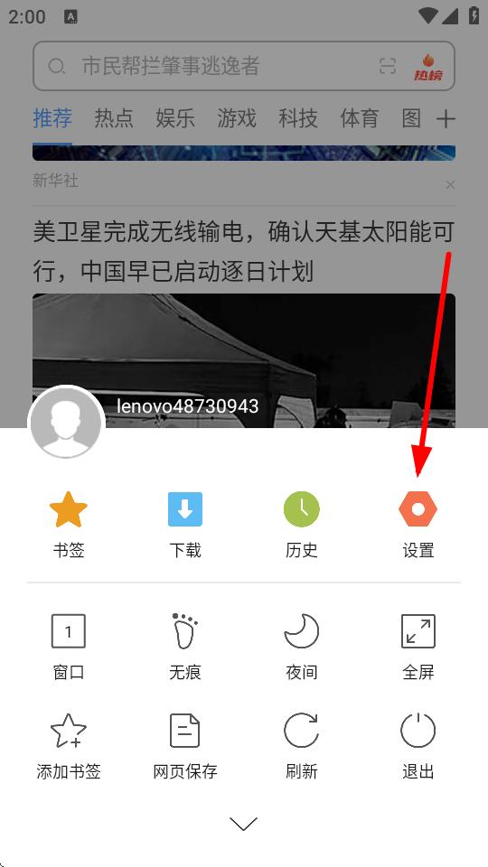 2、在彈出的菜單中,點(diǎn)擊設(shè)置進(jìn)入設(shè)置頁(yè)面。