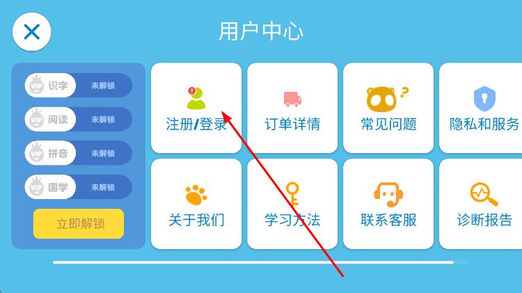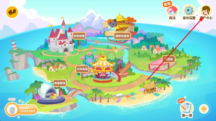 1、打開(kāi)熊貓博士識(shí)字,點(diǎn)擊右上角用戶中心選項(xiàng)。