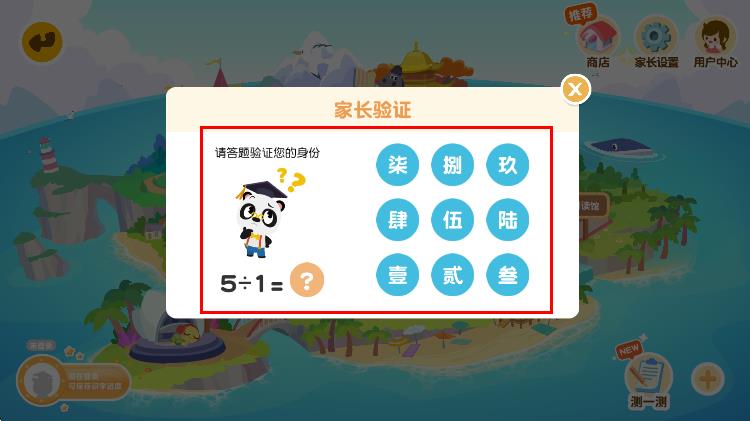 2、在彈出家長(zhǎng)驗(yàn)證窗口中,按要求完成答題驗(yàn)證。