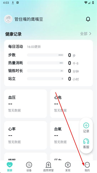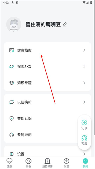 2、在我的頁面中,點(diǎn)擊健康檔案選項(xiàng)。