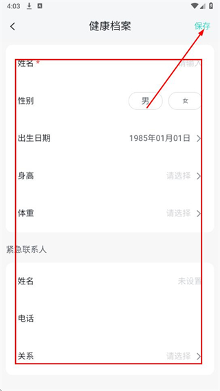 4、在健康檔案填寫頁面,填寫信息,點(diǎn)擊保存即可。