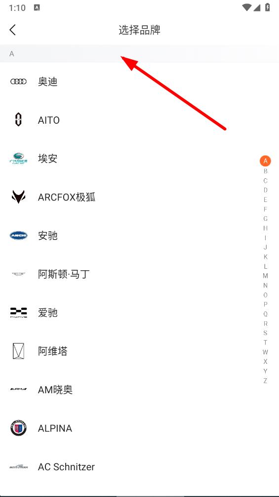 3、在選擇品牌頁面,挑選要出售車輛的品牌,完成后返回賣車信息填寫頁面。