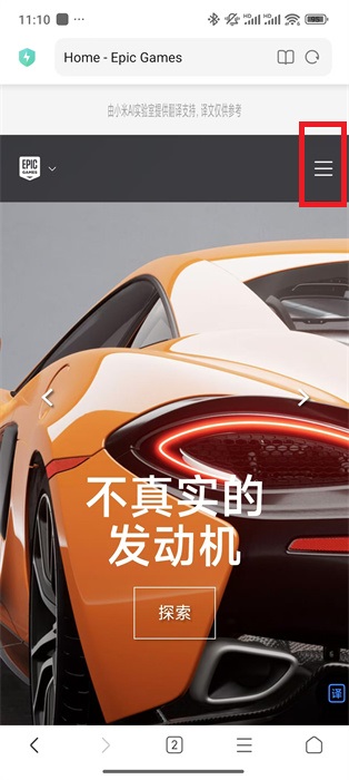 1、首先需要在網(wǎng)頁中打開【epic games】官網(wǎng),然后在官網(wǎng)中點擊右上角的【三】;