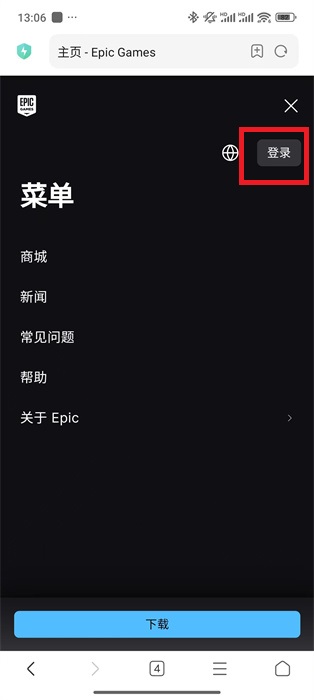 2、緊接著在彈出的界面中點擊【登錄】去登錄我們的epic賬號;