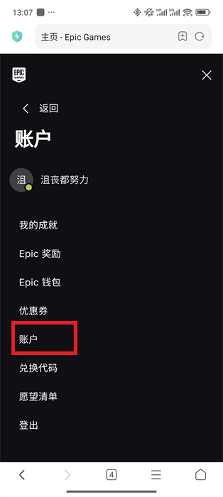 5、在點擊頭像之后會出現(xiàn)【賬戶】功能,點擊打開此功能;