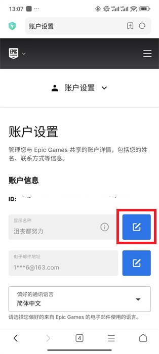 6、最后在賬戶界面中點擊名字后面藍色按鈕,就可以去進行修改名稱,但是兩周只能修改一次。