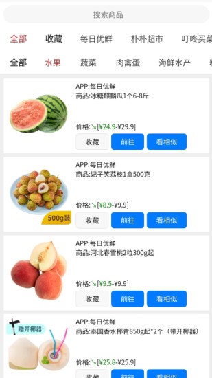 比對(duì)各買(mǎi)菜APP的相似商品;