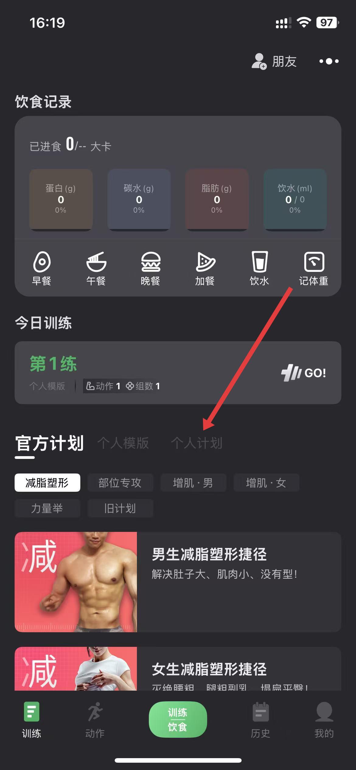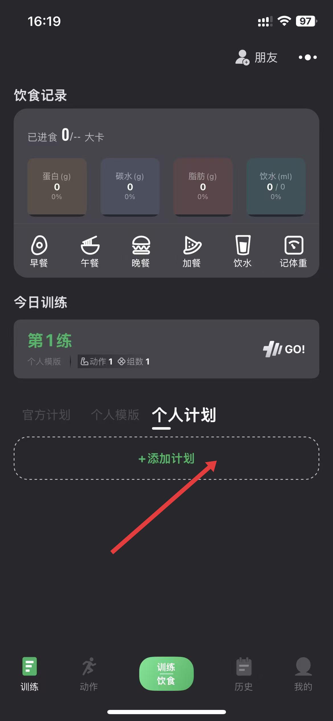 2、在個人計劃頁面,點擊+添加計劃按鈕。
