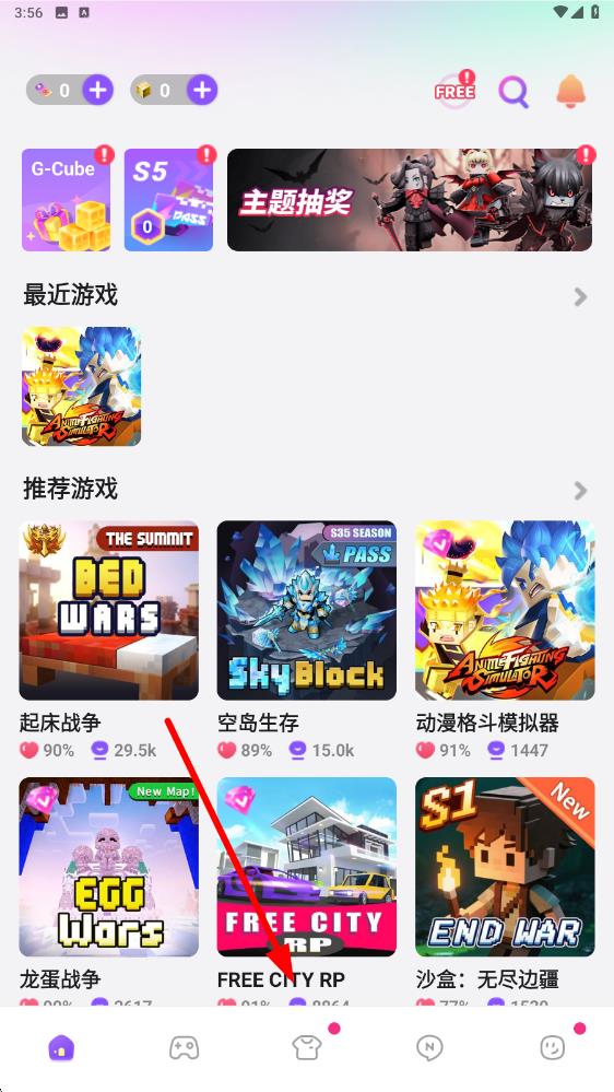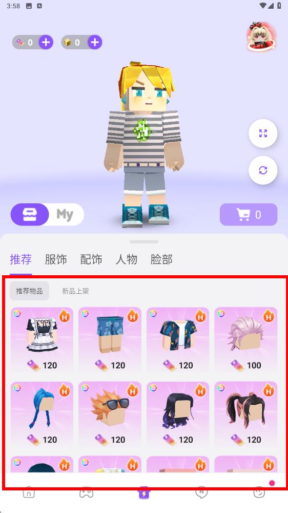 1、打開方塊堡壘游戲,進(jìn)入主界面后,點(diǎn)擊底部導(dǎo)航欄中服裝圖標(biāo),進(jìn)入服裝更換界面。