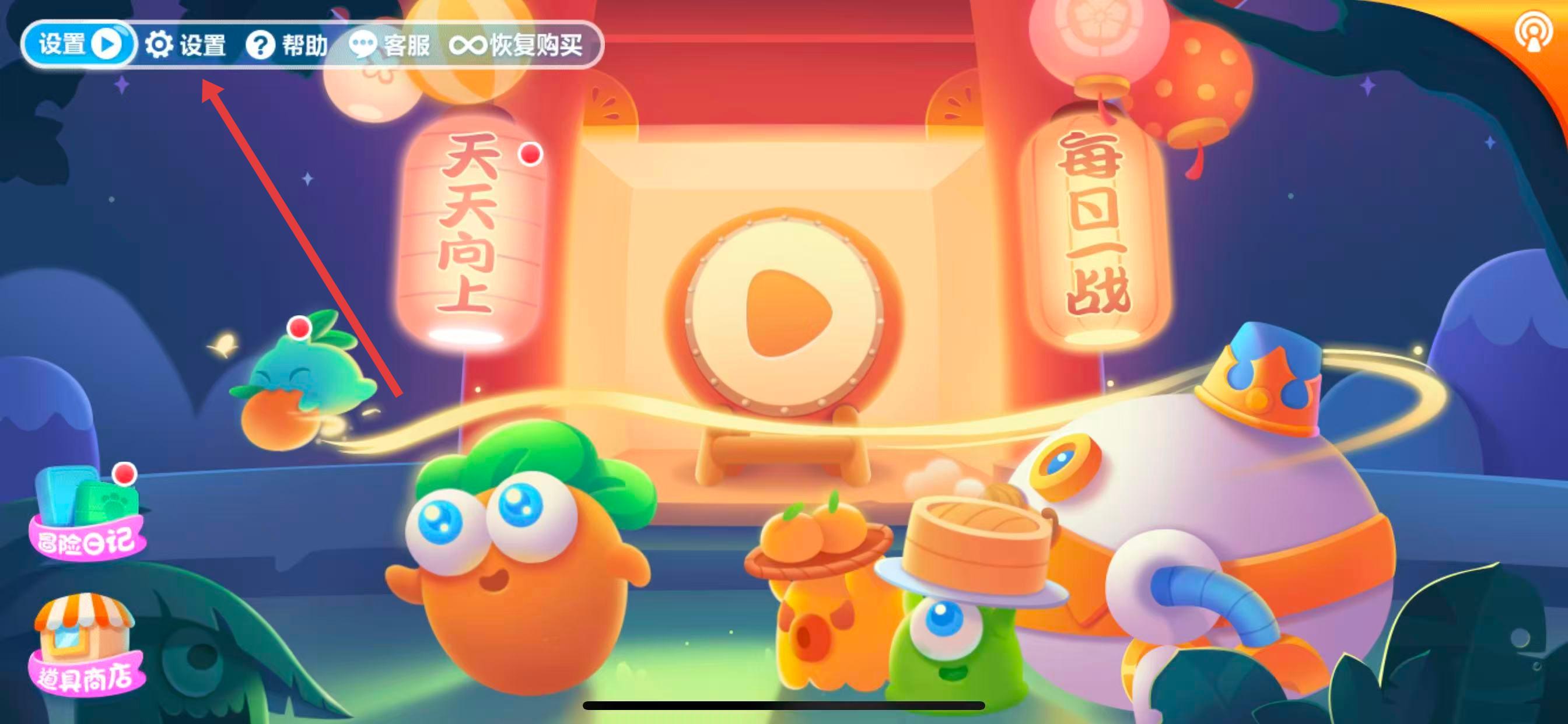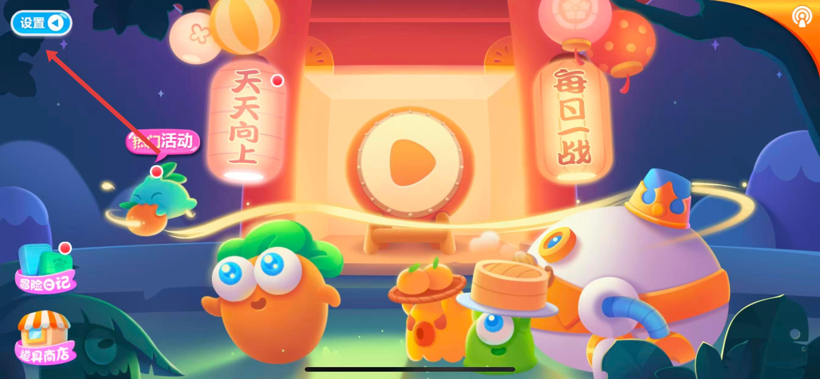 1、打開保衛(wèi)蘿卜2游戲,點(diǎn)擊主界面左上角的設(shè)置按鈕。