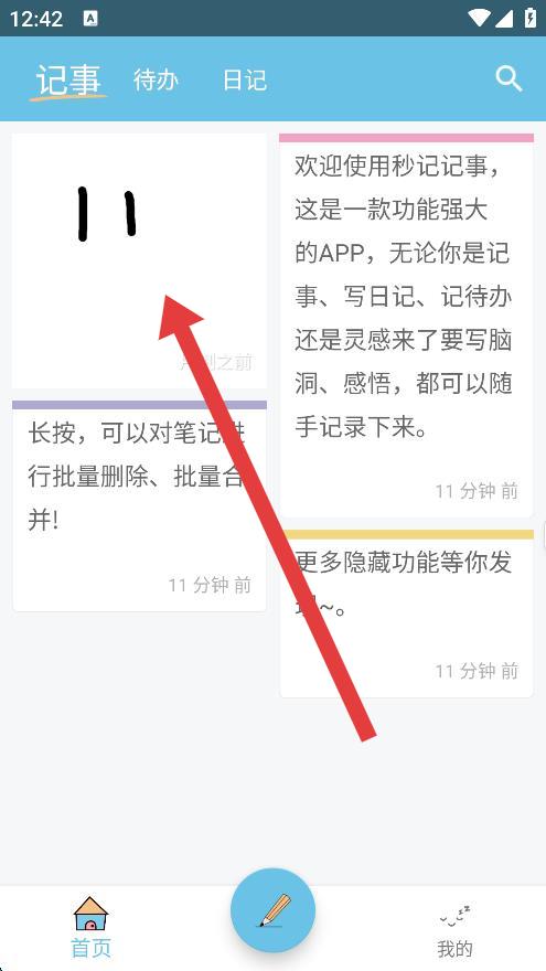 1、打開秒記記事app,點擊需要刪除的筆記,進(jìn)入筆記編輯頁面。