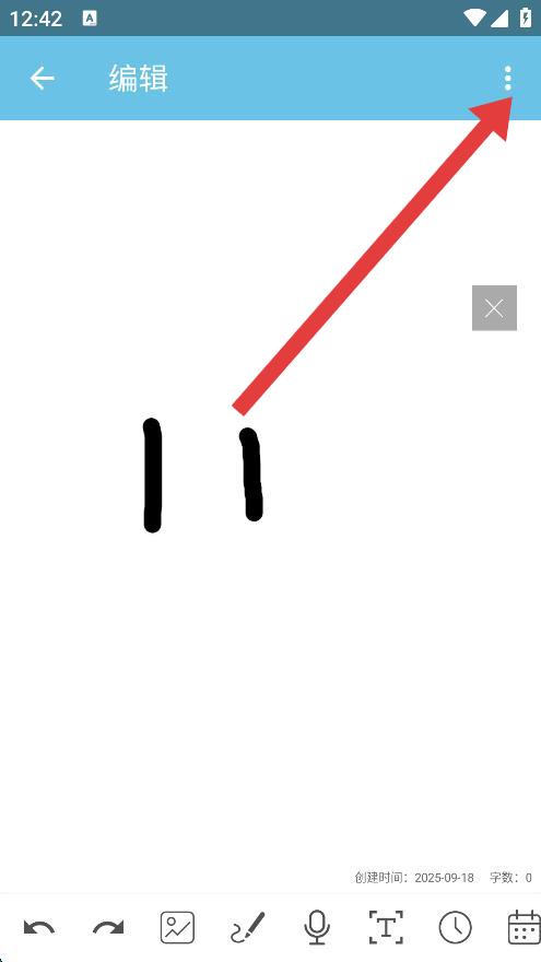 2、在筆記編輯頁面,點擊右上角的更多圖標(biāo),彈出操作菜單。