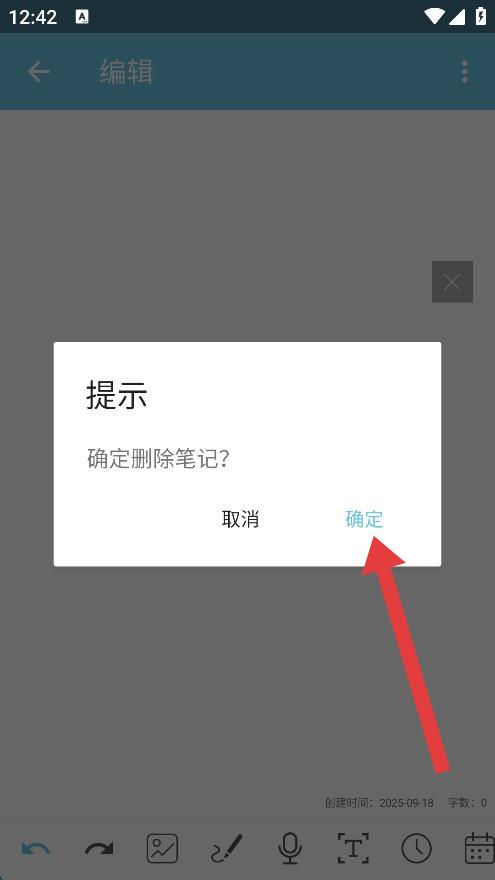 4、在彈出的提示框中,點擊確定按鈕,即可成功刪除該筆記。