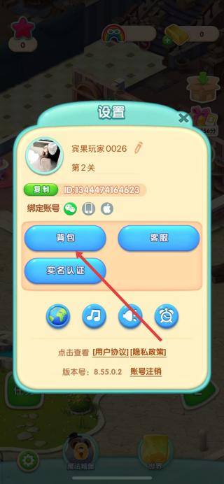 2、在設置界面中,點擊背包按鈕,進入背包頁面。