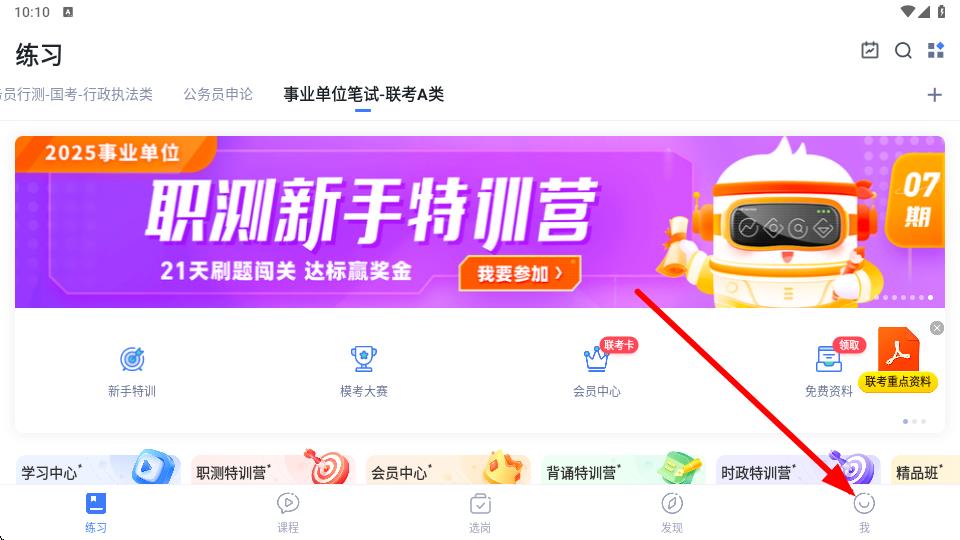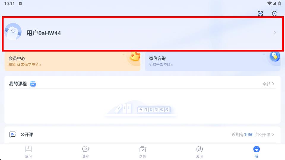 1、打開粉筆APP點(diǎn)擊底部導(dǎo)航欄中我的選項(xiàng),進(jìn)入個(gè)人中心頁(yè)面。
